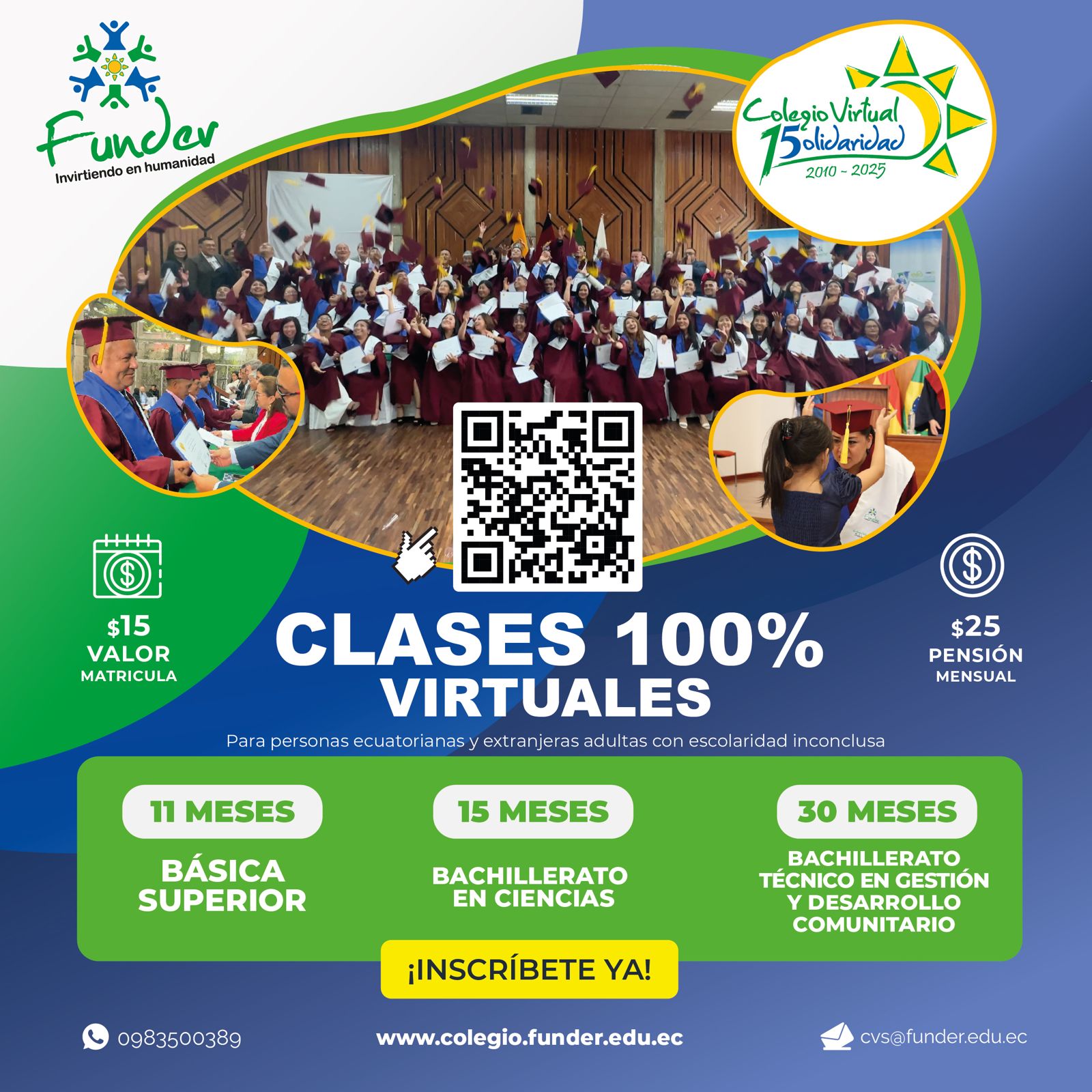 La institución Educativa Popular Particular a Distancia “SOLIDARIDAD”, ofrece el modelo de educación de básica superior y el bachillerato en modalidad virtual a jóvenes y adultos ecuatorianos, migrantes y/o de escasos recursos económicos, que no han completado sus estudios tanto en el país como en el exterior, mejorando la calidad de mano de obra profesionalizada, así como también sus condiciones de vida, para incorporar a la sociedad bachilleres competitivos.